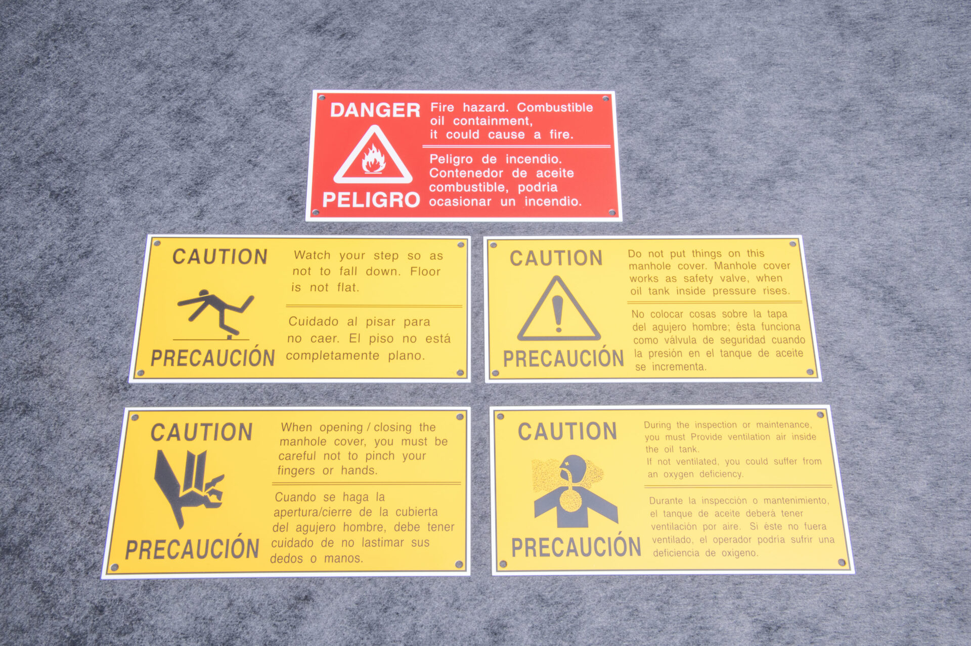 ステンレス・アルミ・樹脂プレートを用いた警告銘板・注意銘板・仕様銘板を多数製作してきた実績があります。